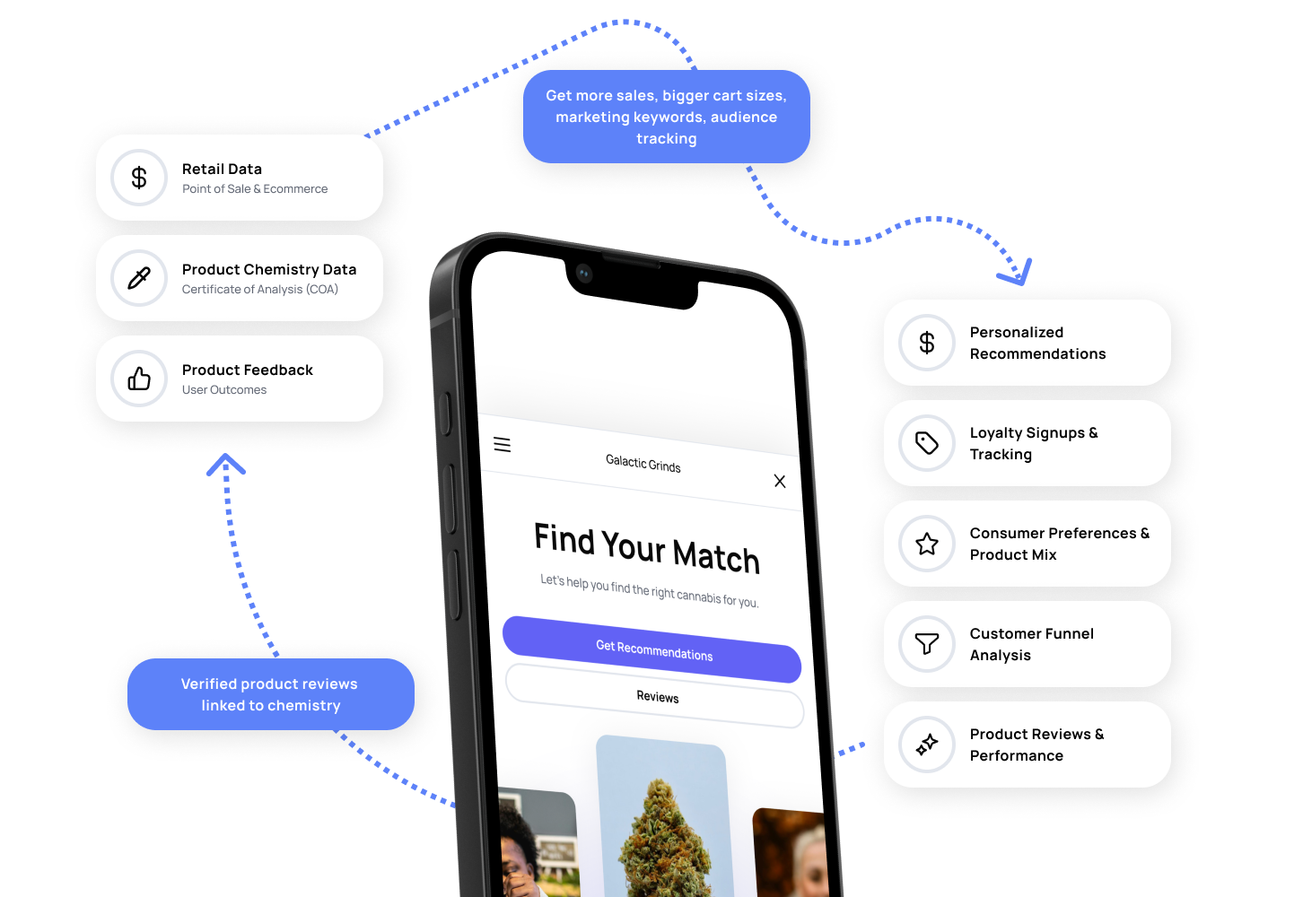 Dive into cannabis discovery with Terpli, where every pick is backed by hard science. We mesh COA Data (Certificate of Analysis - cannabis chemistry reporting), honest reviews, and insider retail knowledge to offer science backed suggestions through a simple Q&A. Customers are matched to terpene and cannabinoid profiles of YOUR products, for that perfect cannabis match.