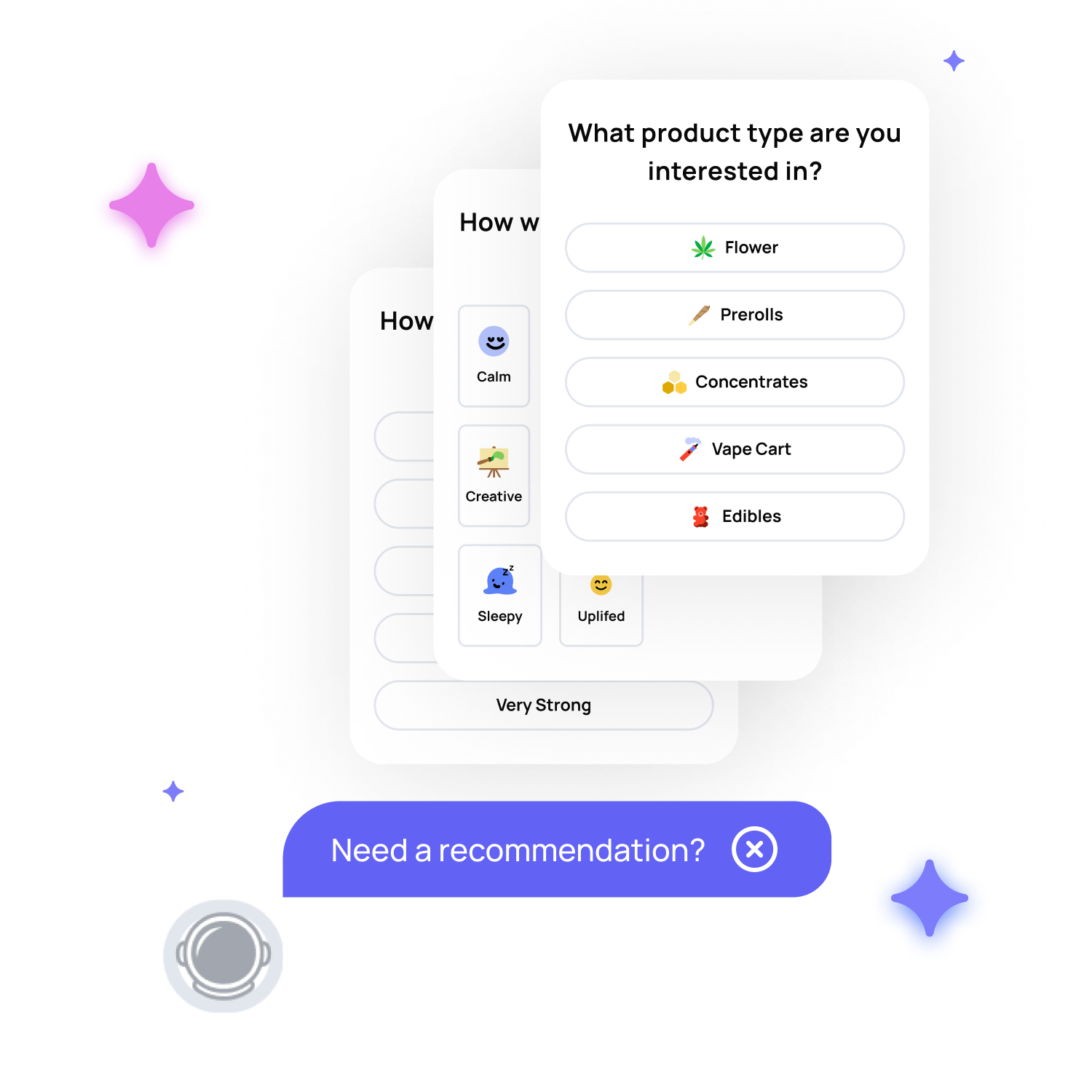 Forget the indica vs. sativa debate; Terpli's quiz is here to simplify through science. Tell us the vibe you're chasing, and we'll do the legwork, finding products that tick all the boxes. The key is transparent education and an intuitive questionnaire that guides without overwhelming to larger average order value (AOV), more monthly spend, and higher conversion online. The more customers use the tool, the better it gets to know them, offering tailored product suggestions that build and reinforce trust.
